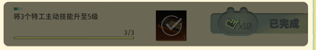 另外要单独说一下的是这个任务“提升主动技能”,我试了一下是普攻,战术技,超限技都算,支援技不算,因此拉一个角色刚好够