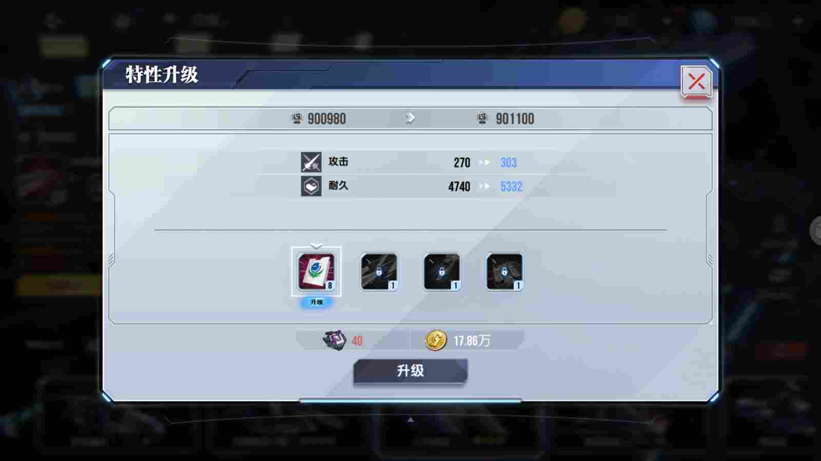 除了星级以外,每台战舰还拥有4种特性,战舰特性可以通过参与【轨道电梯】的攻略来获取所需的素材[战舰特性芯片],战舰特性可以提升全体机体的基础属性,和升星不同,战舰的特性加成需要出战才能生效。