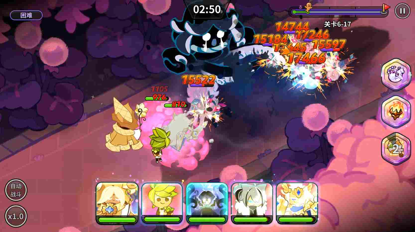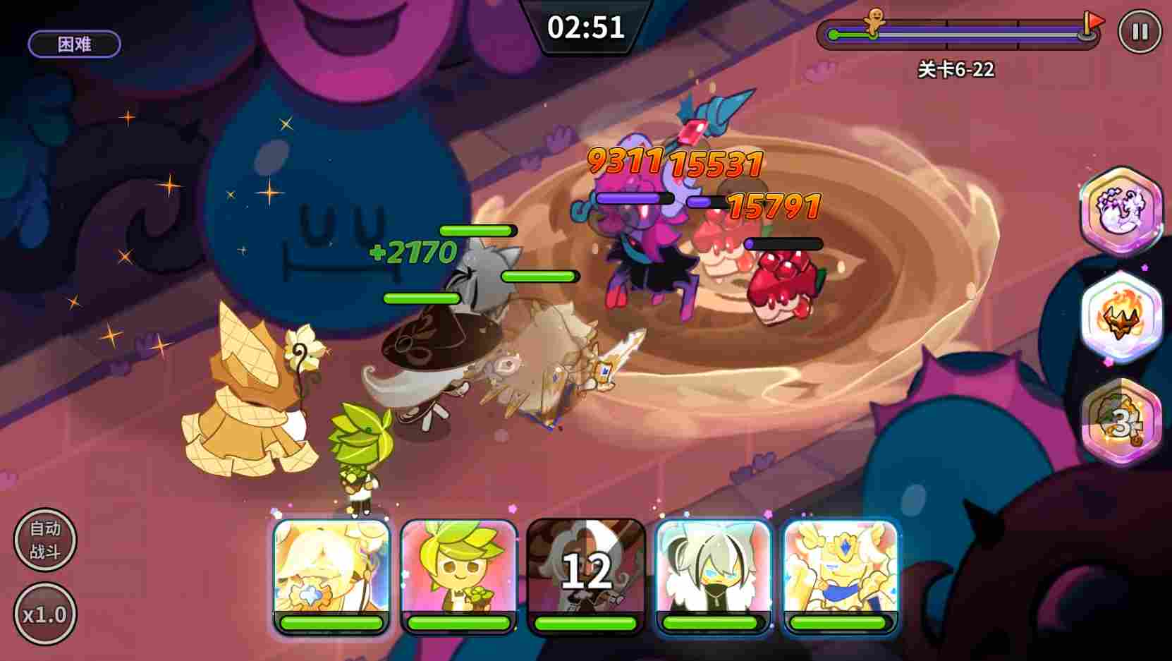 就目前的数据来看,墨鱼饼干和拿铁饼干的伤害量是不低的,浓缩咖啡饼干虽然单词伤害没那么高,但是因为拉满了能打7段伤害,且最后炸那一下伤害也不算低,所以整体的伤害量相对还可以。芒果饼干和甘草饼干是单词伤害略低,攻击次数低,所以在伤害上没有其他的那么高,但因为技能附带额外功能也有自己的特色。