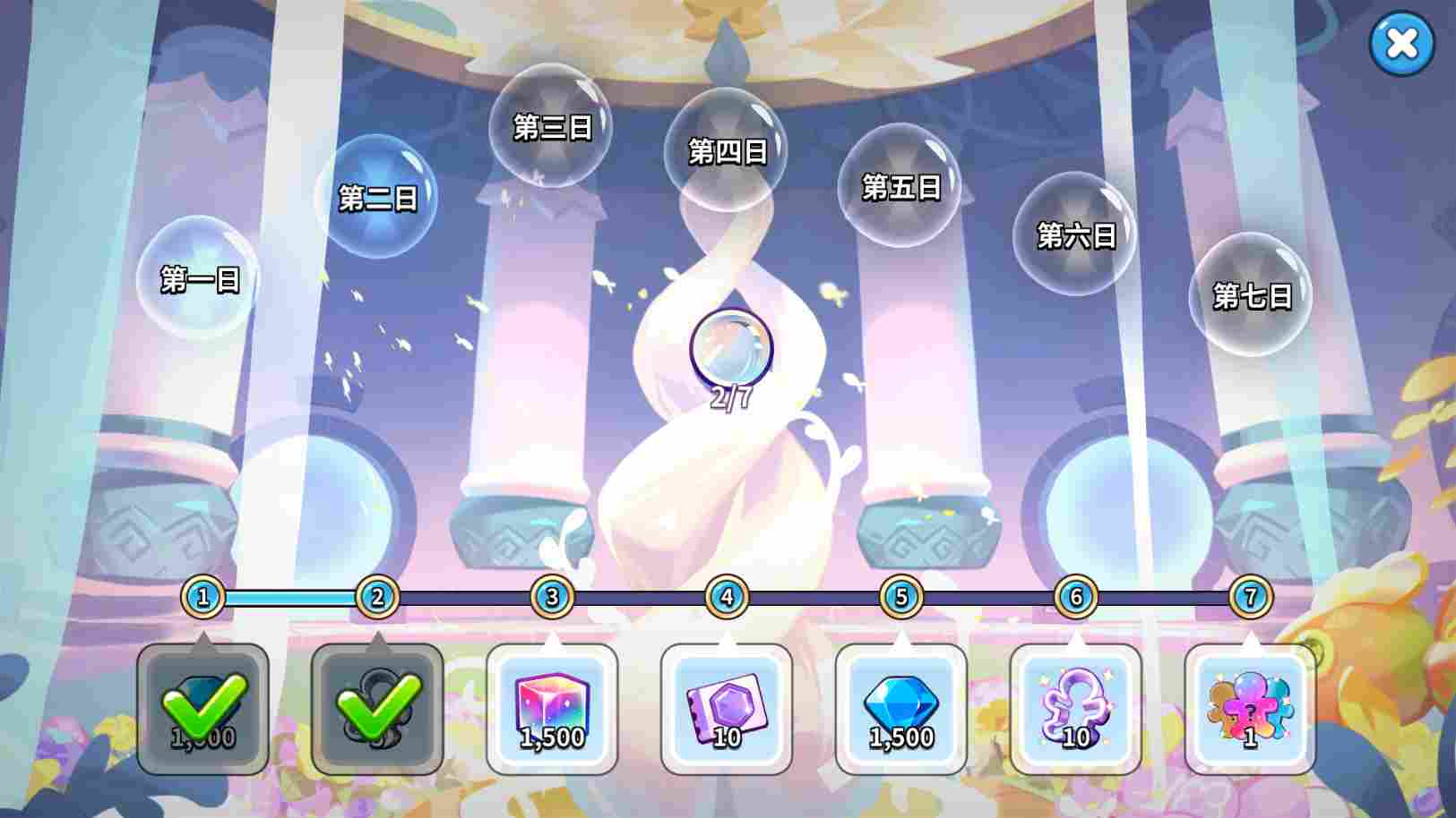 玉露芥子莲每天都有6种不同的任务,完成后分别给奖励。当一天的所有任务完成,可以领取进度奖励,统算下来能有20抽饼干卡,2次五连宝物扭蛋,最主要是第七日任务完成直接随机给一个超稀有饼干。