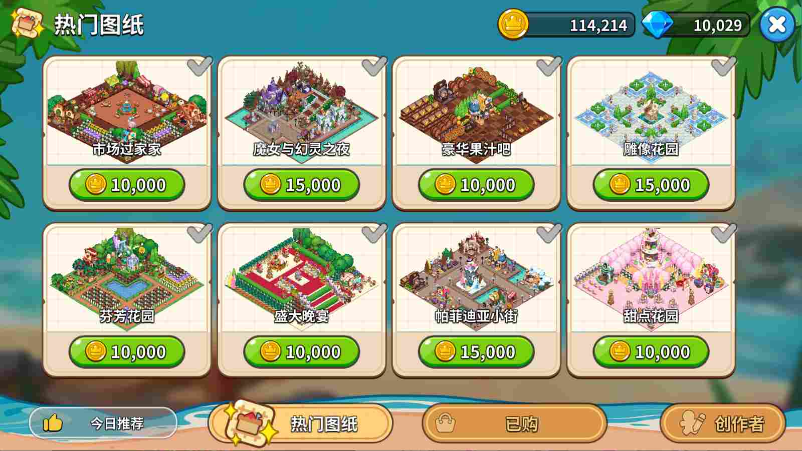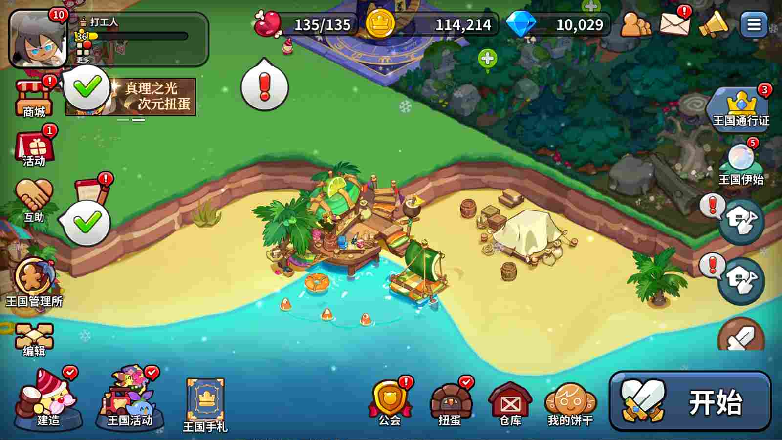 此外,还有两个特殊地标建筑,在开垦指定的土地之后,能解锁巧克力螺旋面包飞船和宇宙星星糖天文台。一个是减少热气球探险时间的,另一个是提升战斗结算金币获取量的,都可以升级弹药消耗极光材料。这两个建筑都不着急升级,有极光材料先建造海滩设施或者开垦土地。