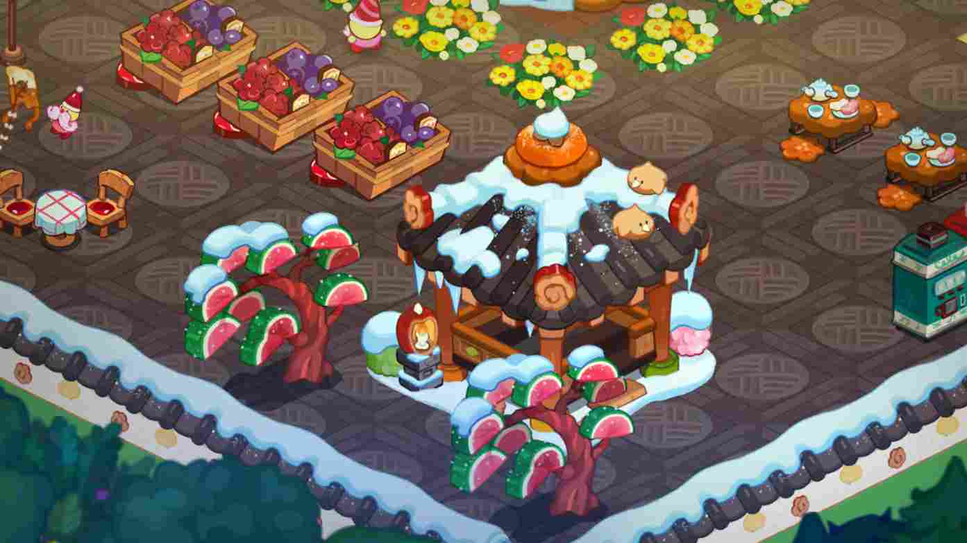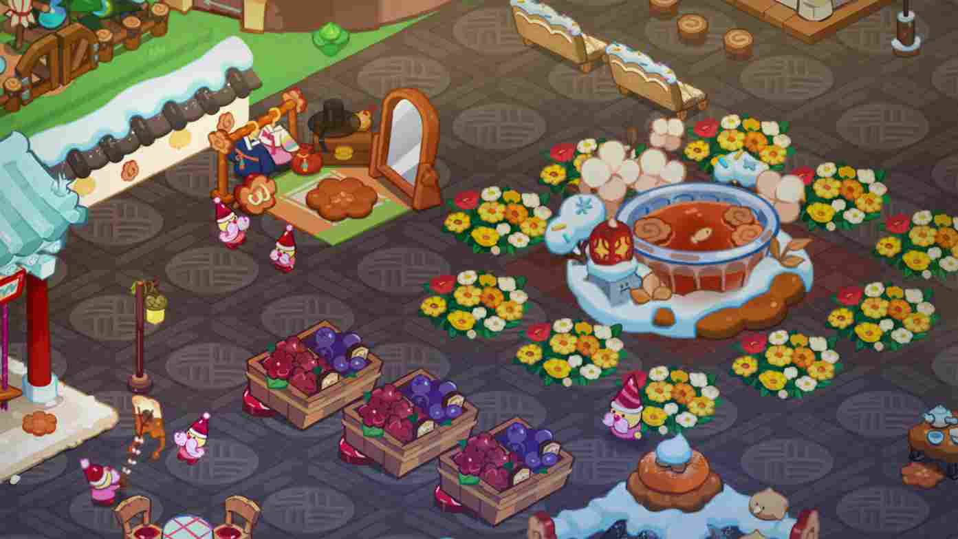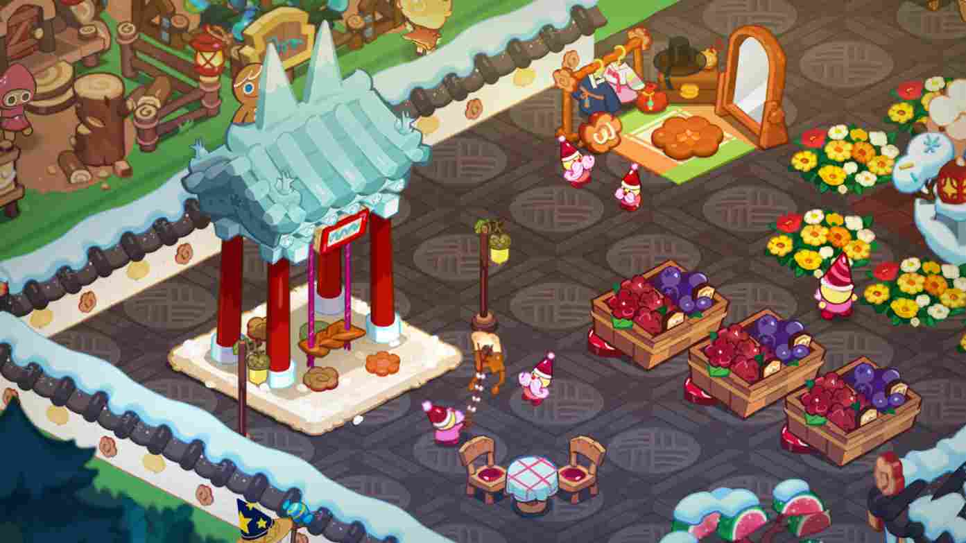 服装间设计采用了春节团圆宴主题的服装间,有两个糖糖地精在讨论着装。中心建筑就是池塘,周围还有一圈美丽的鲜花围绕。旁边有两个糖糖地精好伙伴在放风筝,还有为他们准备休息的餐桌椅和供他们吃的各种水果,甚至还有一个秋千可以玩,冬天和小伙伴们一起游玩也是一种不错的体验。右下角就是最后一个建筑,叫做传统糕点亭,旁边还有两颗古老果冻松树。玩累了还可以在这休息一下,赏赏雪景也不错。以上就是清清的冬日热炉模块了。喜欢的小伙伴们可以参考一下,你的王国是什么样的呢,一起分享一下吧。