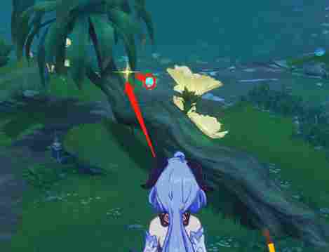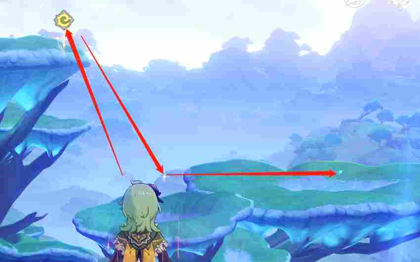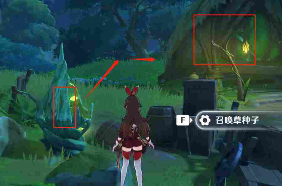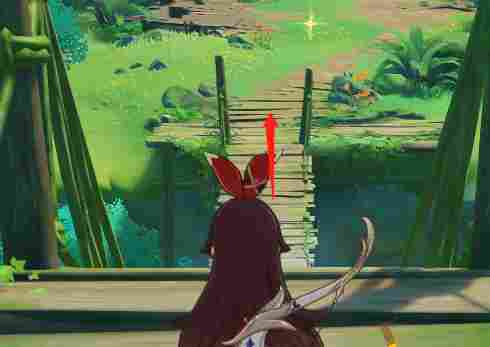 在这颗歪身子树上有一个仙灵,我们踩四叶印过去送仙灵回家