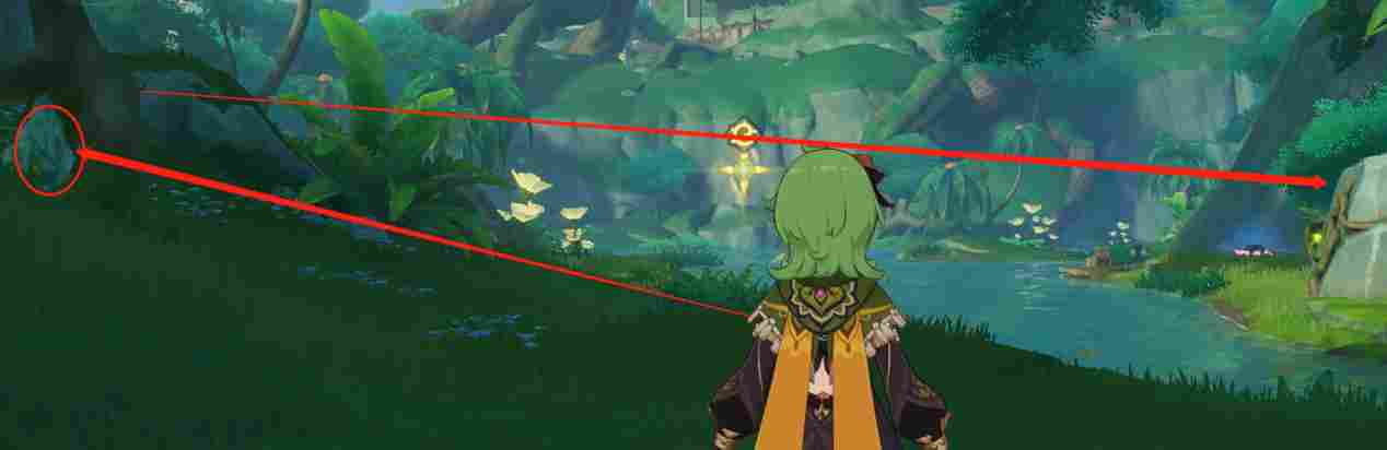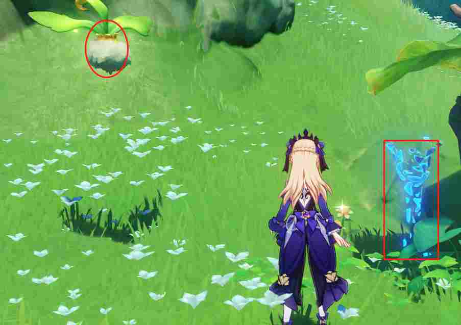 接着我们用草元素角色攻击南方向的这块石头