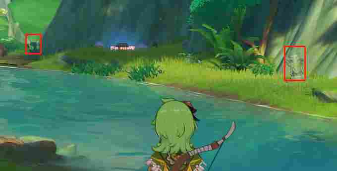 出来后我们先拿到草种子然后射击河对岸的石头